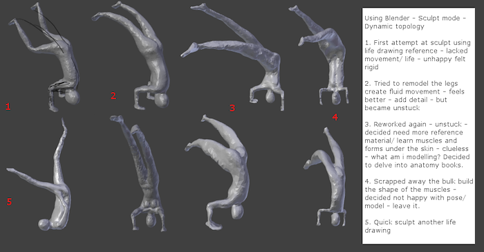 Had to sculpt or draw a figure in a dynamic pose for Unleash Anatomy course - well there is more of a process of finding (feels like ideal art piece). The headstand (my decided pose) ended up with no real finished sculpt - Steve Lord's talk at Gnomon was a real push and inspiration for me to find form through anatomy. The process continues....